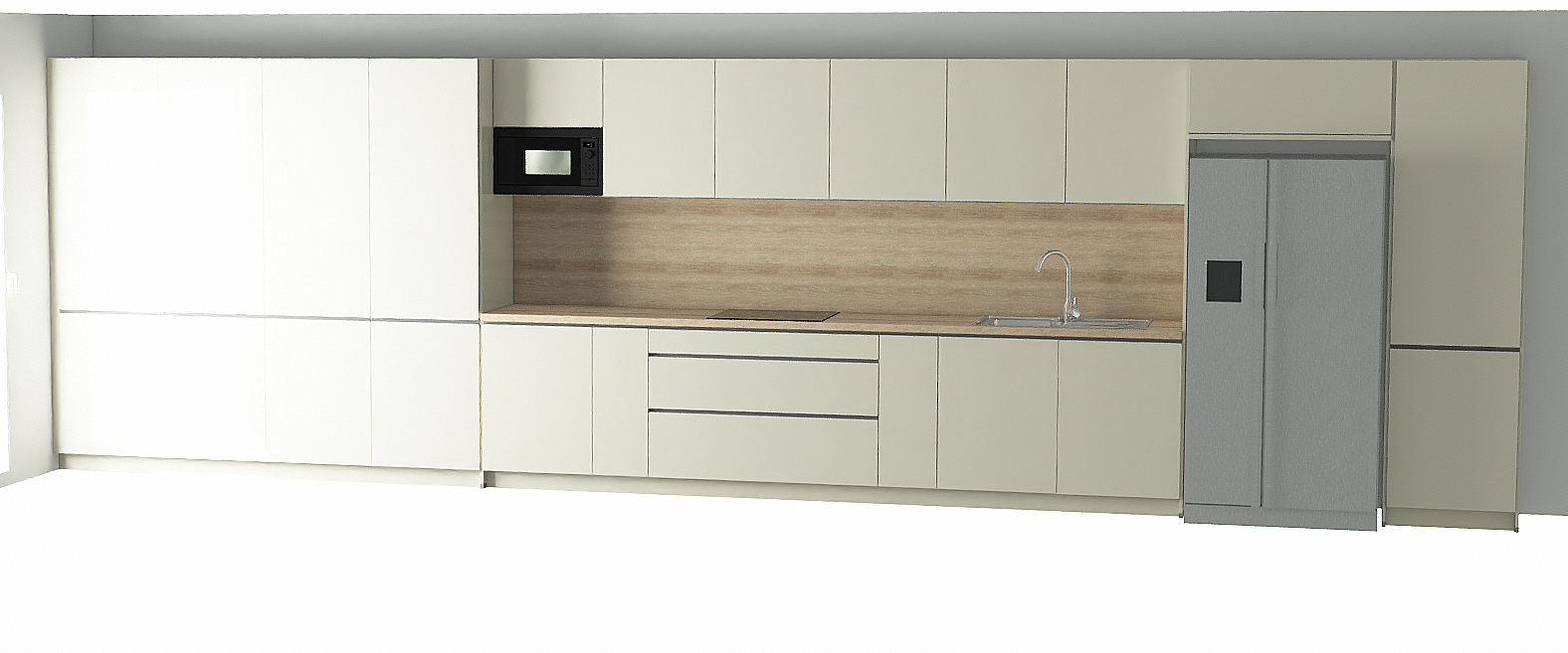 Er staat een nieuwe ingerichte keuken met vaatwasmachine, wasmachine, microgolf, inductiekookplaat en een Amerikaanse koelkast met ijsblokmaker.